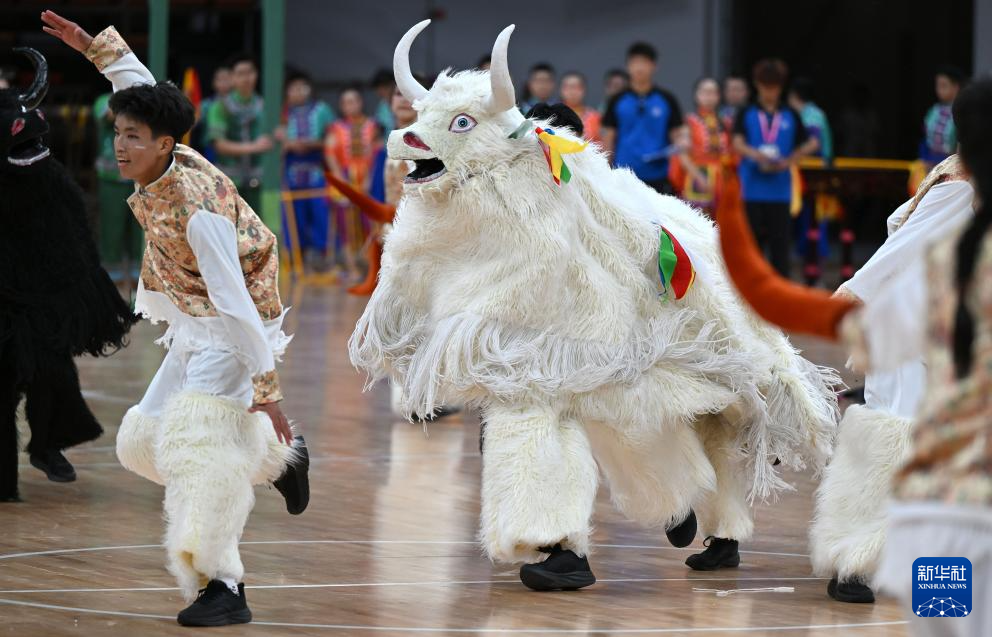 11月24日,北京隊(duì)選手表演藏地喜樂斗牦牛。新華社記者 郭程 攝