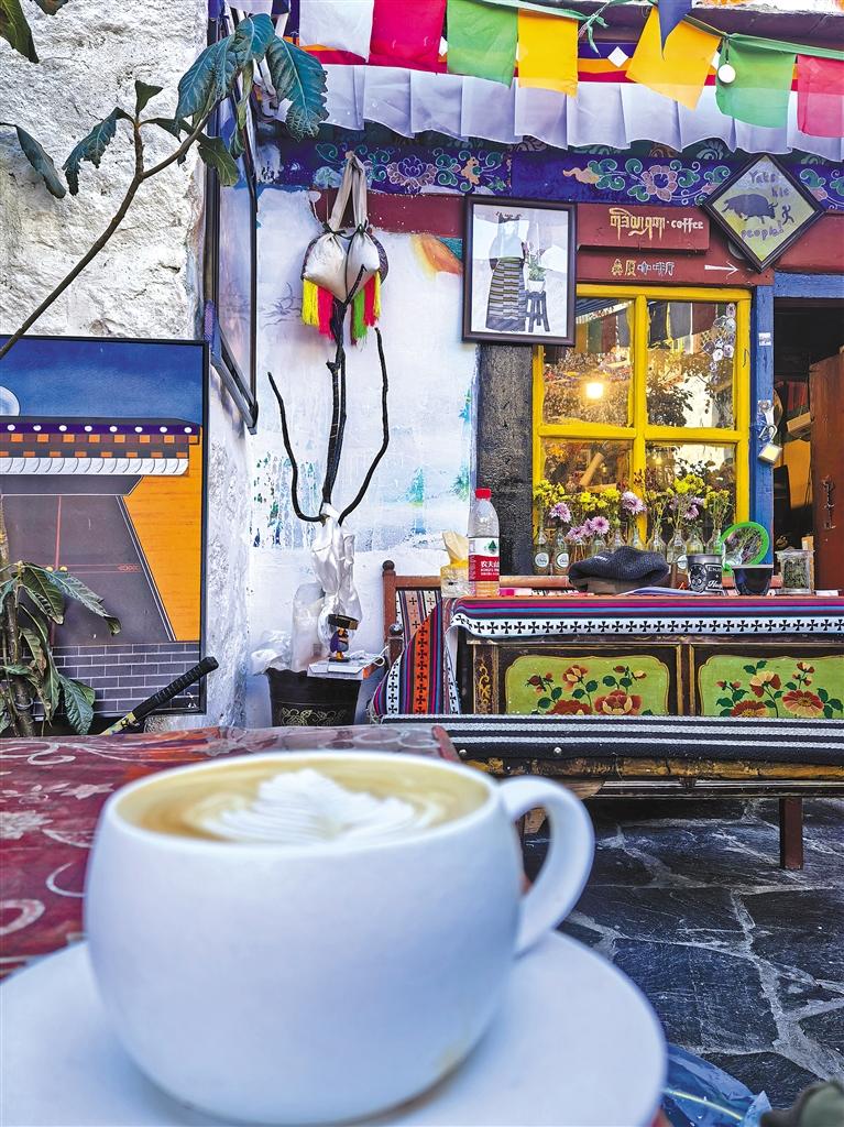離開曲蘇大院,記者來到了另一個取景地—貢桑孜大院。與曲蘇大院相比,貢桑孜大院則顯得更加現(xiàn)代和時尚。走進(jìn)大院,就能聞到醇厚的咖啡香氣,院子的角落里有一家咖啡店,這家咖啡店是旦增格桑和朋友共同經(jīng)營的。