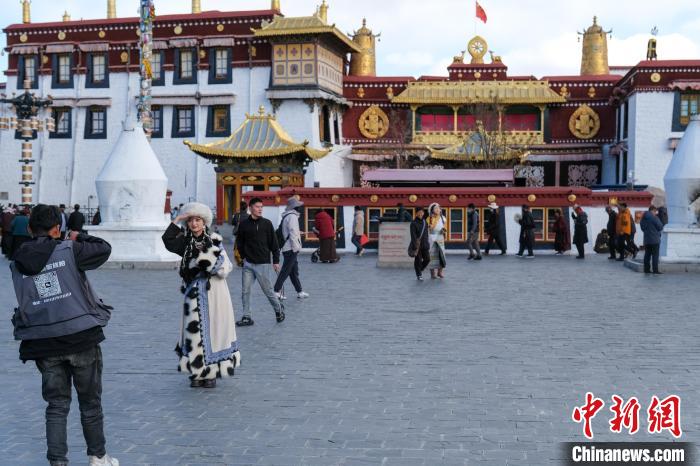 11月28日下午,游客在拉薩大昭寺廣場拍攝服裝寫真?!≈行律缬浾?江飛波 攝