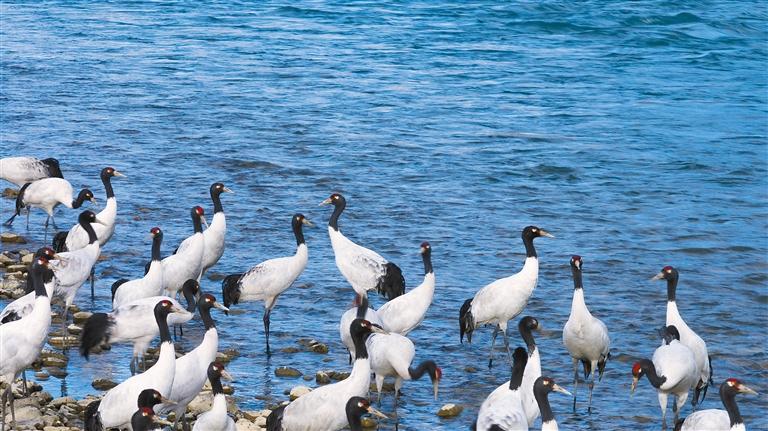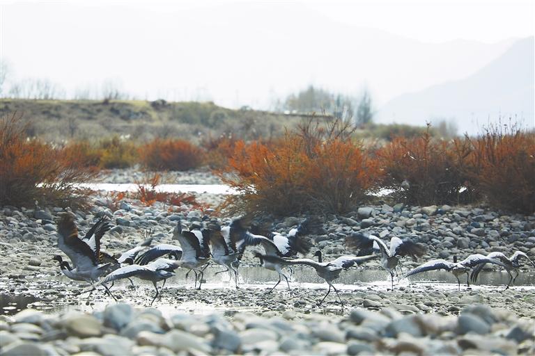 本版圖片均為黑頸鶴在墨竹工卡境內(nèi)棲息的場景。