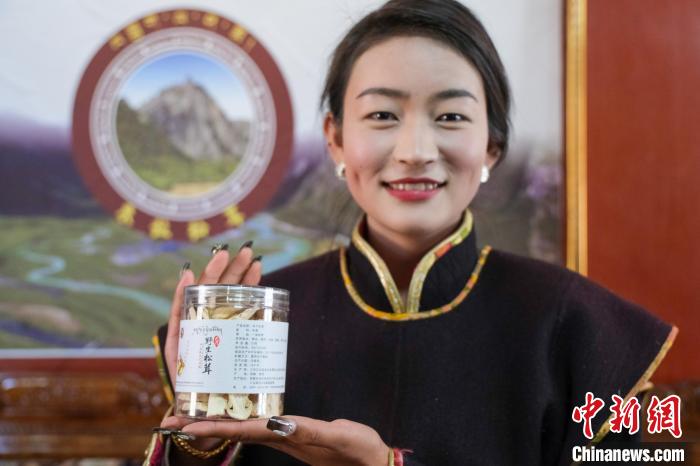 12月12日,西藏林芝工布江達縣巴河鎮(zhèn)白瑪康珠展示當地合作社加工的松茸產品。中新社記者 江飛波 攝