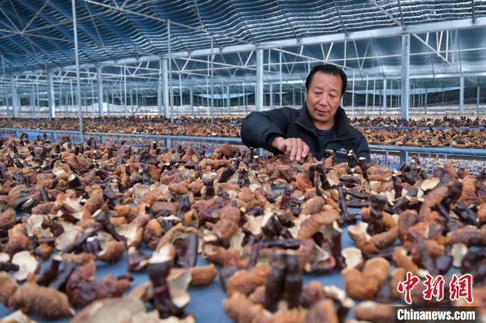 12月10日,西藏林芝米林市米林鎮(zhèn)紅太陽科技示范家庭農場負責人尼瑪查看靈芝風干情況。中新社記者 江飛波 攝