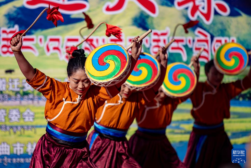 12月17日,森布日生態(tài)搬遷安置點(diǎn)居民在“物交會(huì)”開幕式上表演傳統(tǒng)舞蹈。新華社記者 姜帆 攝 ??