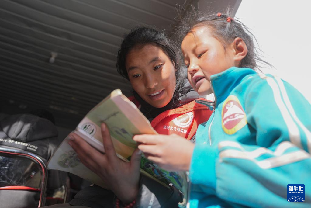 1月25日,在定日縣曲洛鄉(xiāng)熱木青村安置點(diǎn),大學(xué)生志愿者在安置點(diǎn)在給孩子們輔導(dǎo)功課。新華社記者 晉美多吉 攝?
