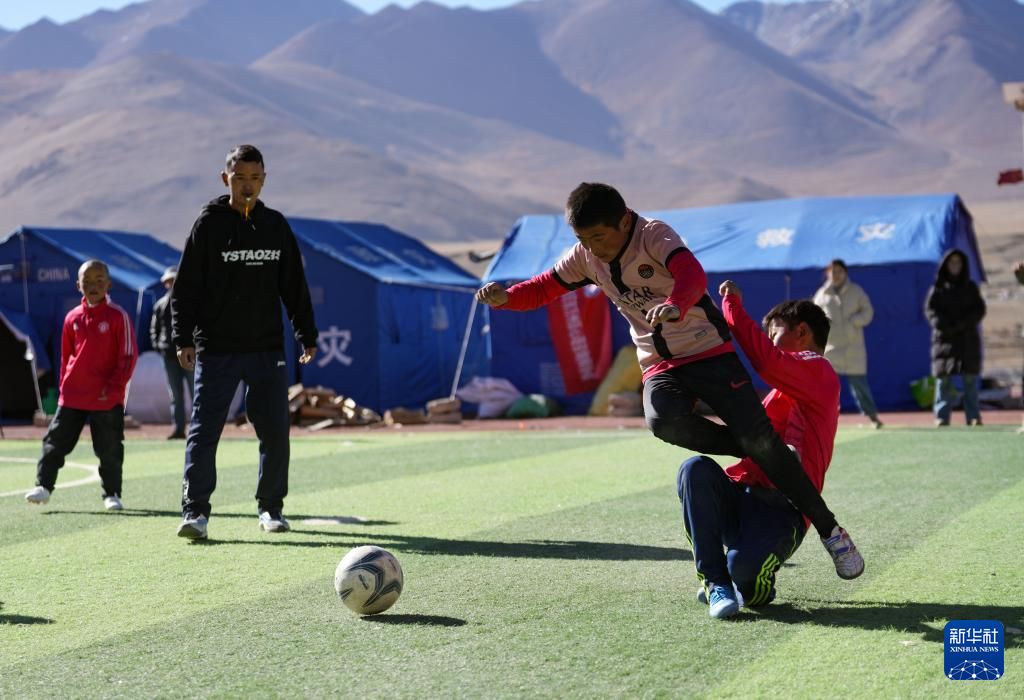 1月26日,在定日縣曲洛鄉(xiāng)完全小學(xué)操場上,長所鄉(xiāng)嘎旦村和曲洛鄉(xiāng)措昂村的孩子們?cè)谶M(jìn)行足球比賽。新華社記者 晉美多吉 攝?