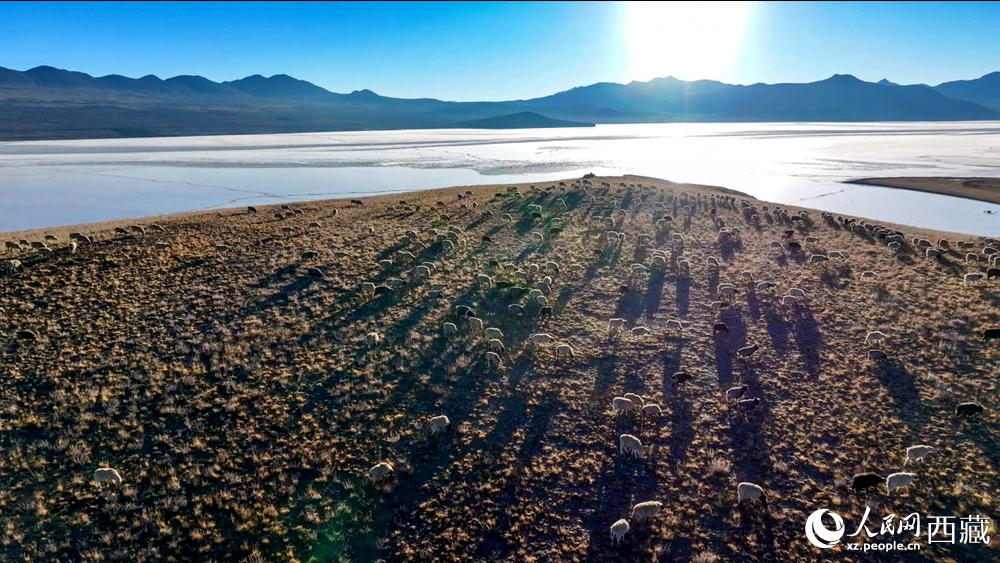 普莫雍錯“冰上趕羊”,是當(dāng)?shù)啬撩袷来鄠鞯墓爬现腔邸C磕甓?,由于推瓦村海拔高、夏季短,草場無法為羊群提供充足的過冬飼料。因此,每年高原最冷的時候,推瓦村牧民會把羊群趕到普莫雍錯水草豐茂的湖心島,依靠島上的草料度過最寒冷的冬期。