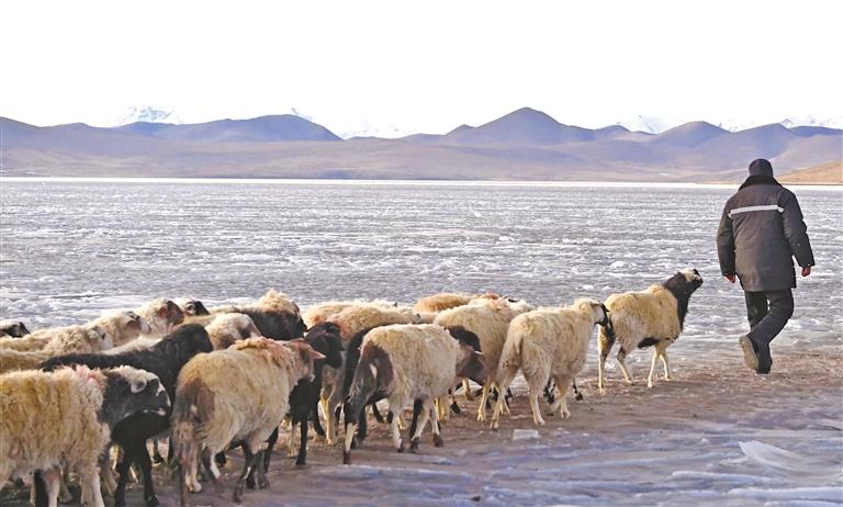 在西藏山南巍峨的群山之間,普莫雍錯如同一顆璀璨的藍(lán)寶石,鑲嵌在海拔5000多米的高原之上。每年2月,當(dāng)湖面結(jié)冰封凍時,浪卡子縣推瓦村的村民便會將羊群集結(jié)在一起,通過冰面趕往湖心島過冬,這一過程被稱為“冰上趕羊”。
