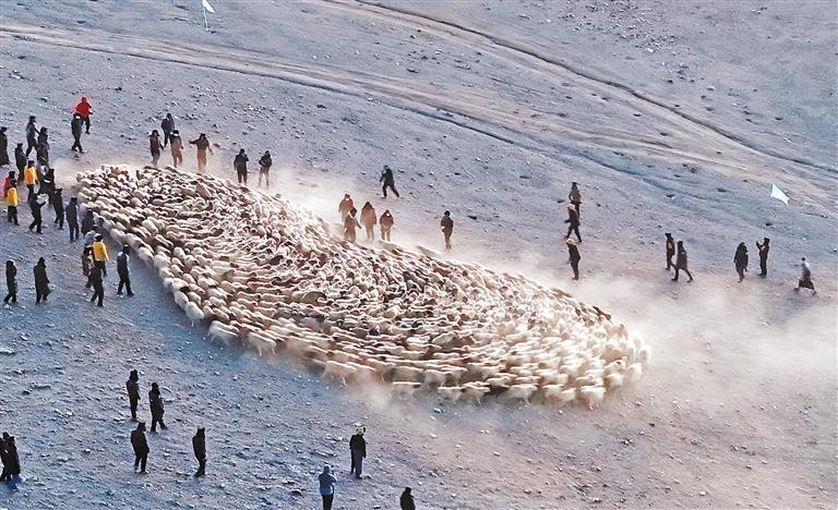 推瓦村牧民將羊群聚攏,準(zhǔn)備轉(zhuǎn)場?! ?/p>