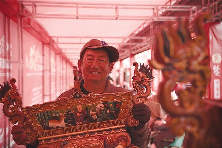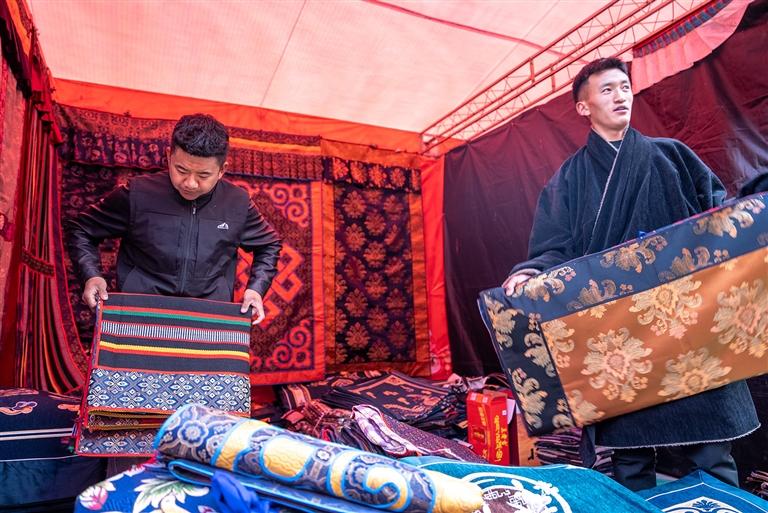 據(jù)悉,此次堆龍德慶區(qū)的年貨節(jié)以“逛展位、享樂(lè)購(gòu)、觀演藝、送政策、寫祝?!睘槲宕蠛诵牧咙c(diǎn)。參展商戶共有118戶,其中既有堆龍本土企業(yè)和合作社帶來(lái)的藏歷新年年貨、農(nóng)畜加工產(chǎn)品、民族手工藝品、傳統(tǒng)服飾,也有山南錯(cuò)那市相關(guān)企業(yè)帶來(lái)的特色產(chǎn)品,品類總數(shù)達(dá)百余種。開(kāi)幕當(dāng)日人流量達(dá)1000余人,銷售額10萬(wàn)余元,呈現(xiàn)出購(gòu)銷兩旺的熱鬧景象。攤主土旦羅布介紹:“這次我?guī)?lái)了藏歷新年禮盒套裝,里面不僅包含了藏文對(duì)聯(lián)和吉祥八寶紅包,還有‘古突’里可包裹的12種代表不同寓意的簽文及寓意,很有過(guò)年的儀式感,非常受市民歡迎?!?/p>