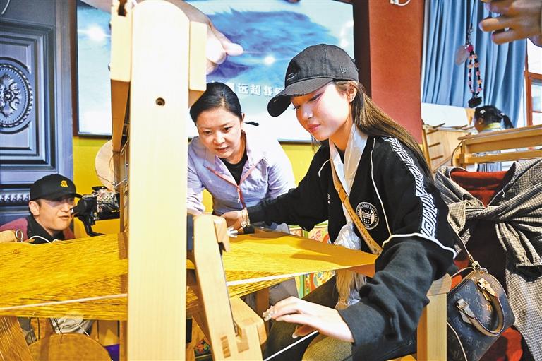 在江孜縣“阿佳格桑工坊”,工坊負(fù)責(zé)人阿佳格桑和江孜縣群團(tuán)工作部黨組書記、部長(zhǎng)央吉向剛到的日本游客獻(xiàn)上潔白的哈達(dá),歡迎遠(yuǎn)道而來的客人。走進(jìn)工坊,游客們被精美的藏族氆氌技藝震撼,看著藏族婦女正在編織,便躍躍欲試。在央吉的帶領(lǐng)下,日本游客紛紛踏上編織機(jī),有模有樣地學(xué)起了編織,豎起拇指稱贊不斷。