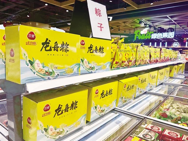 哈達(dá)購(gòu)物廣場(chǎng)內(nèi),上架了口味豐富的粽子。