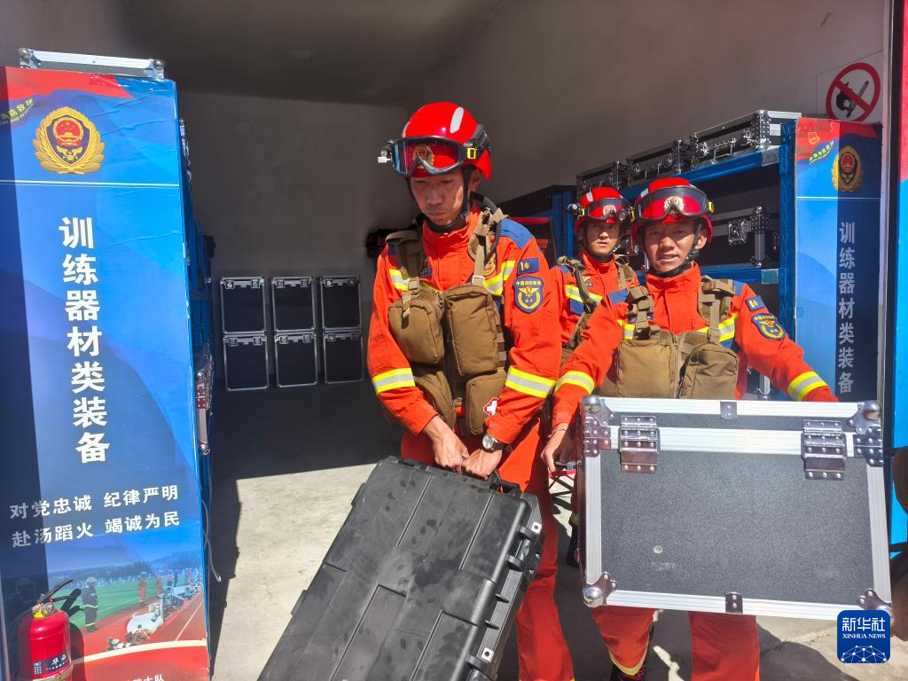 7月8日,西藏森林消防總隊(duì)日喀則大隊(duì)的消防員在整理器材,準(zhǔn)備前往吉隆口岸救災(zāi)。新華社發(fā)??