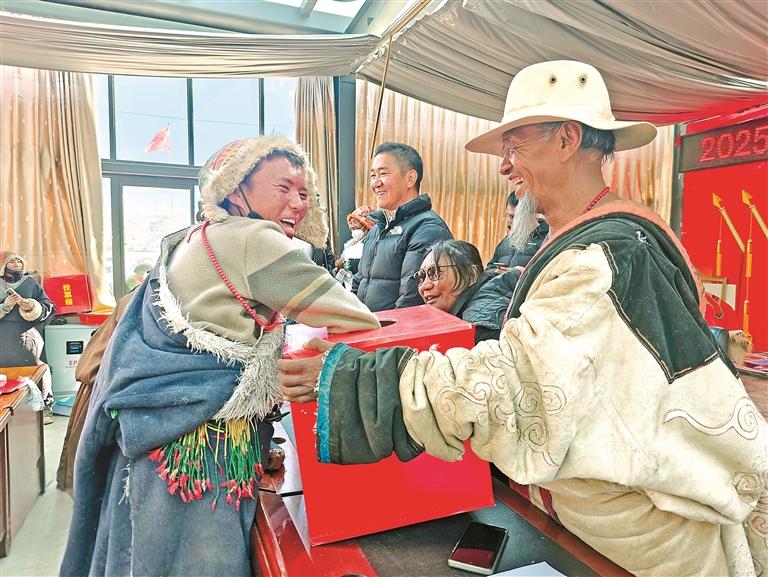 圖為熱鬧喜慶的日土縣熱幫鄉(xiāng)扎普村分房抽簽現(xiàn)場(chǎng)。 通訊員 次仁拉宗 攝
