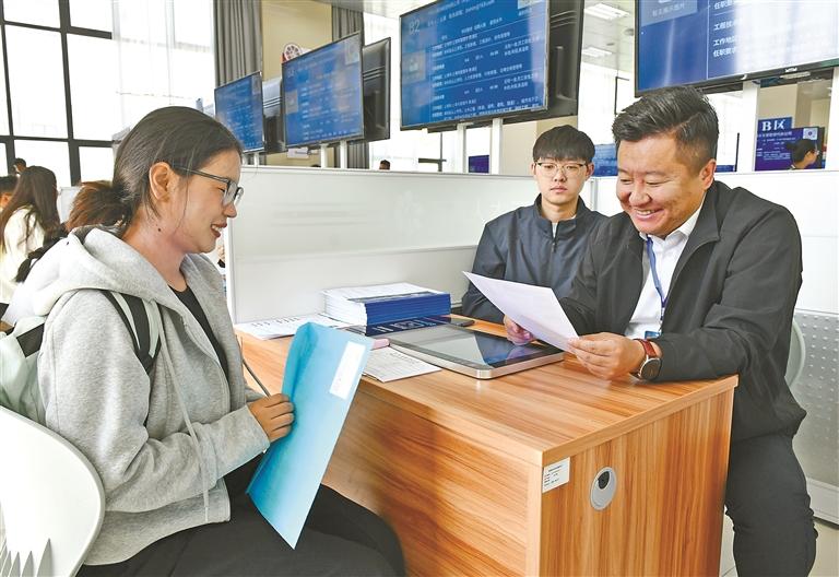 圖為自治區(qū)就業(yè)服務(wù)中心舉辦的2025年全民數(shù)字素養(yǎng)與技能提升專場招聘會(huì)上,求職者在面試。記者 旦增蘭澤 攝