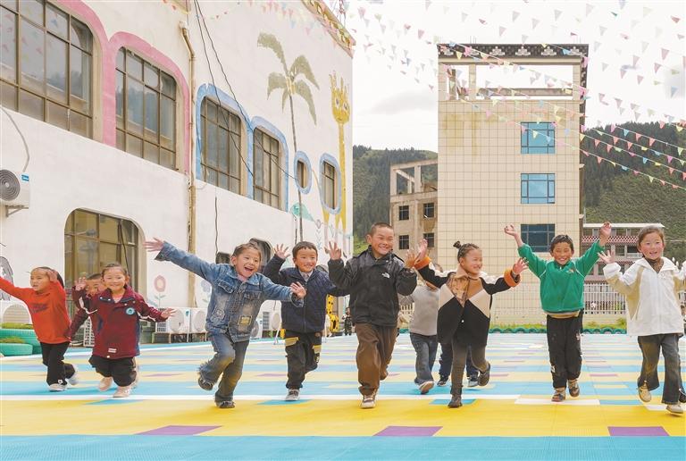 圖為昌都市類烏齊縣重慶雙語幼兒園的孩子們?cè)谡n間快樂地玩耍。記者 丹增群培 攝 (資料圖片)