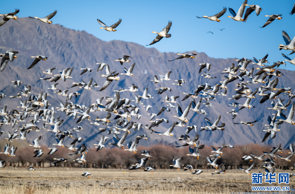 這是11月26日在西藏拉薩市林周縣境內拍攝的斑頭雁。新華網(wǎng) 旦增努布 攝