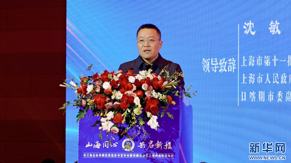 11月29日,上海市第十一批援藏干部聯(lián)絡(luò)組組長,日喀則市委副書記、常務(wù)副市長沈敏致辭。新華社發(fā)(周昱龍 攝)