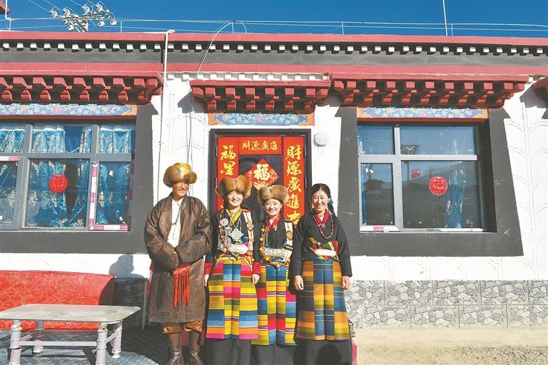 拉孜縣錫欽鄉(xiāng)錫欽村村民一家人在新居前拍下全家福。西藏日?qǐng)?bào)記者 旦增蘭澤 攝