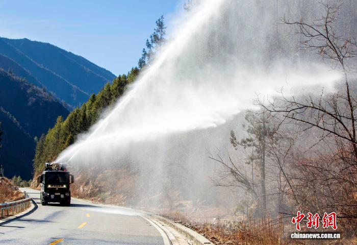 為切實(shí)防范冬季火災(zāi)風(fēng)險(xiǎn),筑牢西藏日喀則市亞?wèn)|縣生態(tài)安全屏障,9日,西藏亞?wèn)|出入境邊防檢查站主動(dòng)作為利用站內(nèi)車(chē)輛對(duì)縣域內(nèi)多處冬季植被干燥、火災(zāi)隱患突出的重點(diǎn)區(qū)域,開(kāi)展灑水增濕作業(yè)。