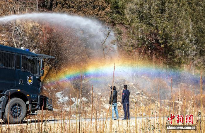 圖為西藏亞?wèn)|出入境邊防檢查站開(kāi)展灑水增濕現(xiàn)場(chǎng)。李錦輝 攝