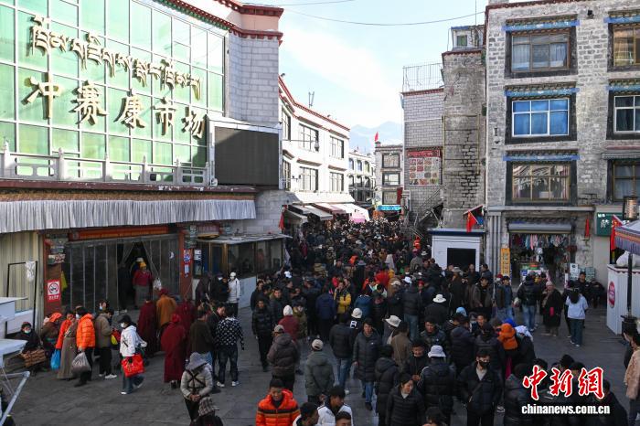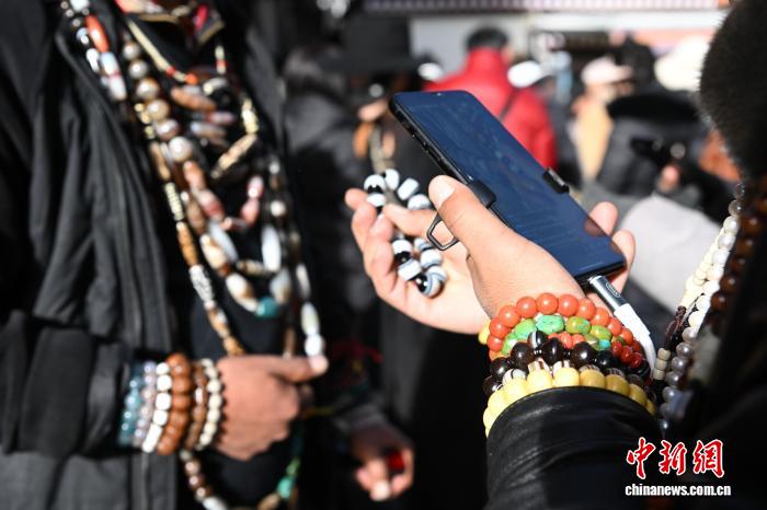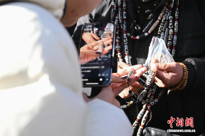 1月9日,西藏拉薩市沖賽康露天集市,在陽(yáng)光下熱鬧非凡。被民眾譽(yù)為“雪域高原義烏”的沖賽康露天集市,地處八廓古城核心區(qū)域,是拉薩最具歷史的古玩與小商品交易地。藏式古玩、特色手工藝品琳瑯滿目,這里延續(xù)著“袖筒交易”等傳統(tǒng)。近年來(lái),商人搶抓電商機(jī)遇開(kāi)啟直播帶貨,線上線下聯(lián)動(dòng),讓百年市集在傳統(tǒng)韻味與現(xiàn)代商貿(mào)的碰撞中煥發(fā)新生,盡顯雪域商貿(mào)獨(dú)特魅力。圖為商人在沖賽康露天集市直播帶貨。中新社記者 貢嘎來(lái)松 攝