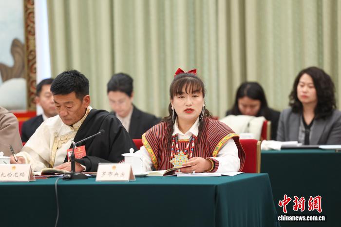 當(dāng)天,西藏代表團(tuán)的開放團(tuán)組會議吸引許多中外記者到場。有記者提問,主要分布在西藏、作為中國人口較少民族的珞巴族和門巴族,如何在年輕人當(dāng)中延續(xù)和傳承本民族文化。