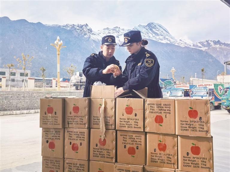 拉薩海關(guān)關(guān)員監(jiān)管驗(yàn)放出口農(nóng)產(chǎn)品。圖由拉薩海關(guān)提供