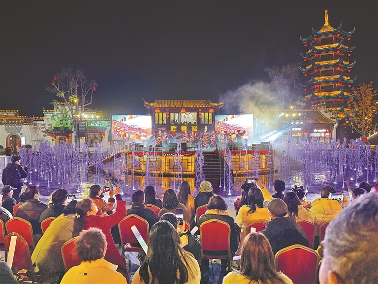 在湖北省云夢縣博物館里,古老藏戲與千年秦簡隔空對話;在祥云灣文旅景區(qū)音樂噴泉舞臺上,《吉祥昂仁》藏戲舞演員宛如格?;ㄊ㈤_在水光瀲滟間;在楚王天下大舞臺上,《大鵬山》六弦琴音雄渾豪邁、舞步粗獷奔放,將神山的巍峨與雪域的壯闊搬到江漢平原;在胡金店萬畝油菜花海中,《多彩的哈達(dá)》為春日花海增添了濃郁的民族風(fēng)情;在安陸、孝昌等周邊縣市,《同心結(jié)·幸福緣》舞蹈節(jié)奏歡快、《日喀則我為你牽掛》三重唱旋律悠揚(yáng),將高原遼闊與南國柔美完美融合……
