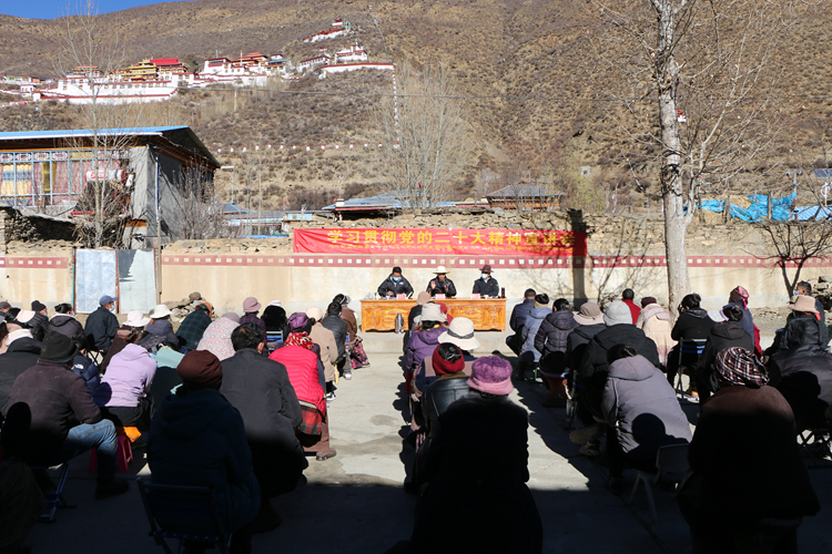 圖為工布江達縣委書記王啟展在米瑞村宣講黨的二十大精神