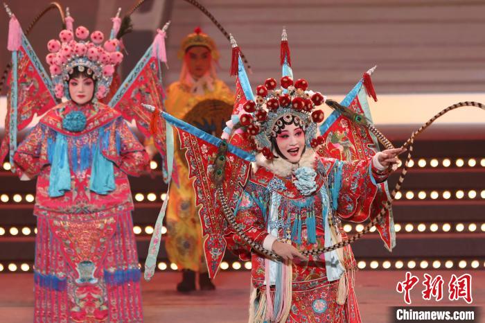 9月10日晚,2024江蘇中秋戲曲晚會(huì)在江蘇廣電荔枝大劇院上演,晚會(huì)緊扣“中秋”和“戲曲”兩大元素,將傳統(tǒng)節(jié)日內(nèi)涵與戲曲藝術(shù)融為一體,戲曲界各劇種名家陳少云、趙志剛、竺小招、周東亮、李奕潔、陳澄、李曉旭、施夏明等“梅花獎(jiǎng)”“紫金文化獎(jiǎng)?wù)隆薄拔娜A表演獎(jiǎng)”獲得者輪番登臺(tái),與近年來涌現(xiàn)出的優(yōu)秀青年演員同臺(tái)演出,凸顯戲曲文化的傳承與創(chuàng)新,為觀眾帶來一個(gè)流光溢彩的戲曲之夜。圖為“梅花獎(jiǎng)”得主許亞玲(右)表演淮海戲《樊梨花點(diǎn)兵》選段。 中新社記者 泱波 攝
