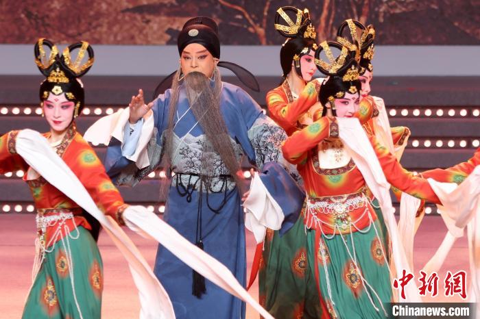 9月10日晚,2024江蘇中秋戲曲晚會(huì)在江蘇廣電荔枝大劇院上演,晚會(huì)緊扣“中秋”和“戲曲”兩大元素,將傳統(tǒng)節(jié)日內(nèi)涵與戲曲藝術(shù)融為一體,戲曲界各劇種名家陳少云、趙志剛、竺小招、周東亮、李奕潔、陳澄、李曉旭、施夏明等“梅花獎(jiǎng)”“紫金文化獎(jiǎng)?wù)隆薄拔娜A表演獎(jiǎng)”獲得者輪番登臺(tái),與近年來涌現(xiàn)出的優(yōu)秀青年演員同臺(tái)演出,凸顯戲曲文化的傳承與創(chuàng)新,為觀眾帶來一個(gè)流光溢彩的戲曲之夜。圖為“梅花獎(jiǎng)”“文華表演獎(jiǎng)”得主趙志剛表演越劇《沙漠王子》選段。 中新社記者 泱波 攝