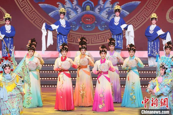 9月10日晚,2024江蘇中秋戲曲晚會(huì)在江蘇廣電荔枝大劇院上演,晚會(huì)緊扣“中秋”和“戲曲”兩大元素,將傳統(tǒng)節(jié)日內(nèi)涵與戲曲藝術(shù)融為一體,戲曲界各劇種名家陳少云、趙志剛、竺小招、周東亮、李奕潔、陳澄、李曉旭、施夏明等“梅花獎(jiǎng)”“紫金文化獎(jiǎng)?wù)隆薄拔娜A表演獎(jiǎng)”獲得者輪番登臺(tái),與近年來涌現(xiàn)出的優(yōu)秀青年演員同臺(tái)演出,凸顯戲曲文化的傳承與創(chuàng)新,為觀眾帶來一個(gè)流光溢彩的戲曲之夜。圖為戲曲演員們在舞臺(tái)上表演節(jié)目。中新社記者 泱波 攝