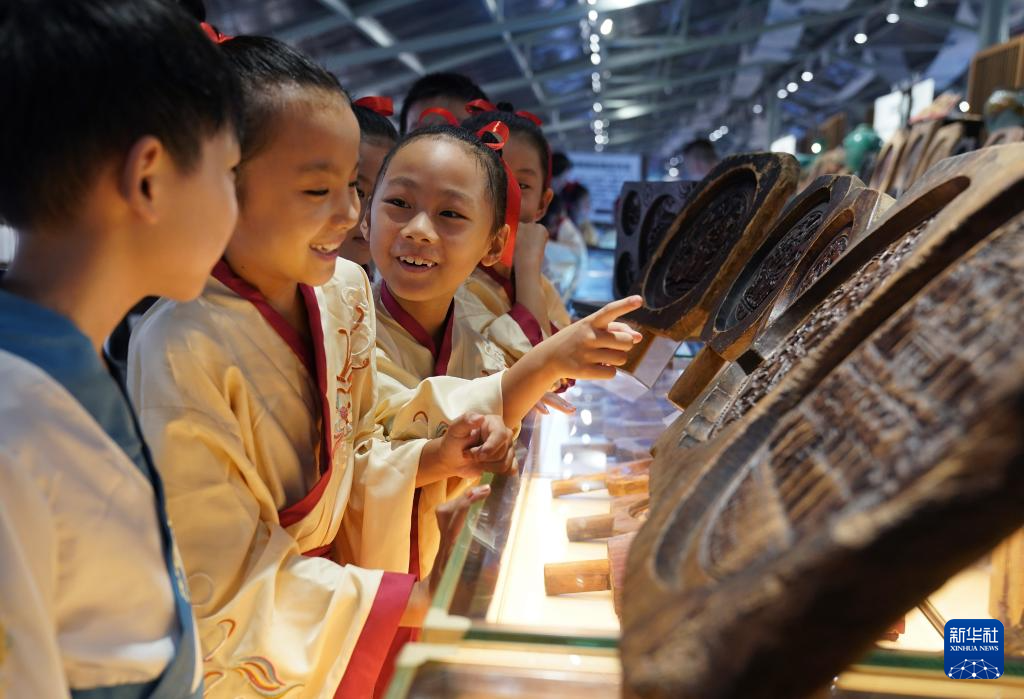 9月11日,孩子們在參觀傳統(tǒng)手工糕餅?zāi)>?。新華社記者 萬象 攝
