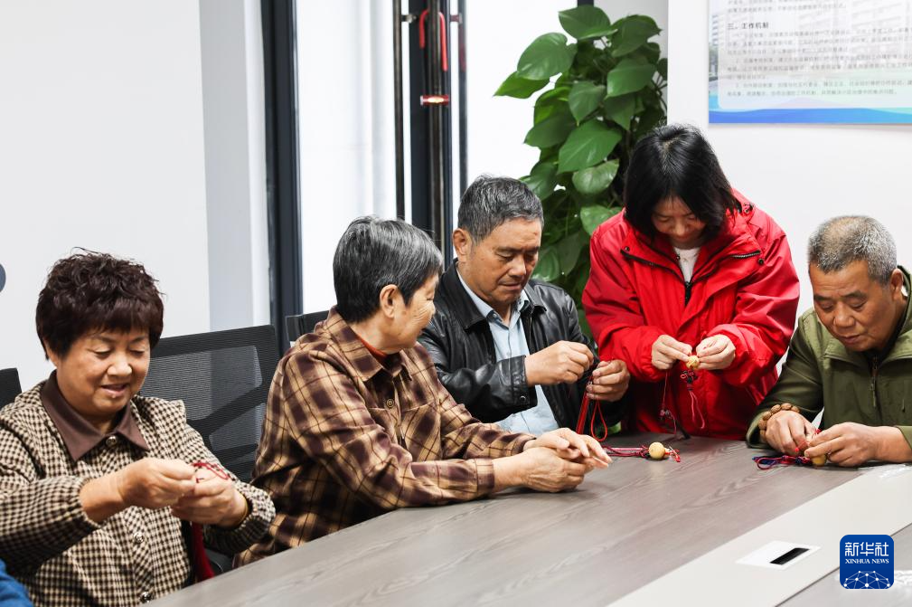 10月21日,志愿者教老人制作小葫蘆掛件。新華社記者 徐昱 攝