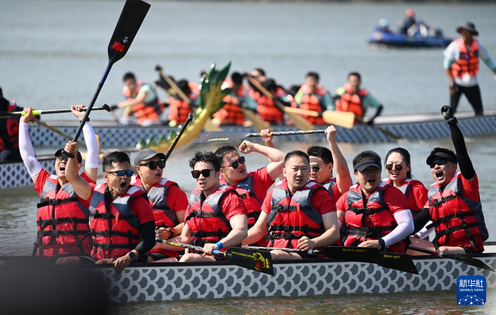 當日,2025年天津港保稅區(qū)龍舟大賽在天津空港經(jīng)濟區(qū)西湖舉行,轄區(qū)內(nèi)的20支企事業(yè)單位代表隊同臺競技,奮楫競渡,迎接端午節(jié)的到來。
