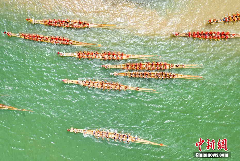 18日,“理傳千年 龍騰四?!焙嫌乐菔械揽h2023年端午節(jié)“紫金杯”國家非遺龍船賽在該縣瀟水河畔鳴鑼開賽。此次國家非遺道州龍船賽吸引該縣12個(gè)鄉(xiāng)鎮(zhèn)(街道)、73個(gè)村(社區(qū))、172艘龍船、4816名民間運(yùn)動(dòng)員參賽。圖為172艘龍船、4816名民間運(yùn)動(dòng)員參賽。