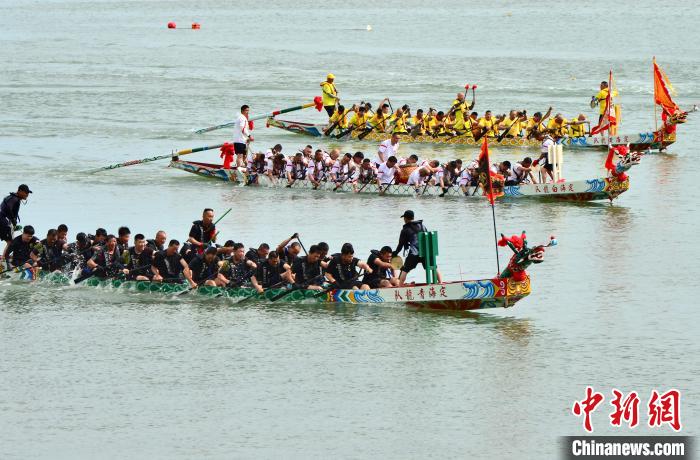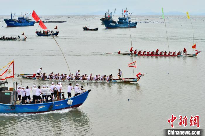 5月27日,福建省連江縣定海村舉行海上龍舟賽活動,迎接即將到來的端午節(jié)。中新社記者 張斌 攝