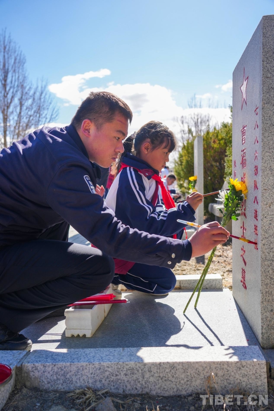 西藏日喀則邊境管理支隊組織民警和少先隊員清掃烈士陵園周邊環(huán)境