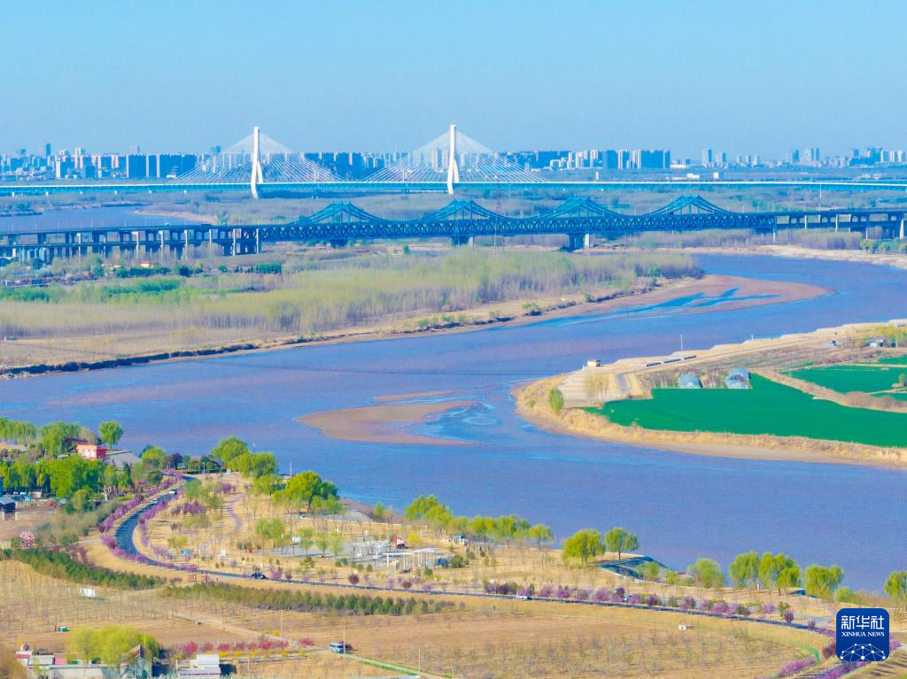 4月2日拍攝的黃河山東濟(jì)南段兩岸風(fēng)景(無人機(jī)照片)。