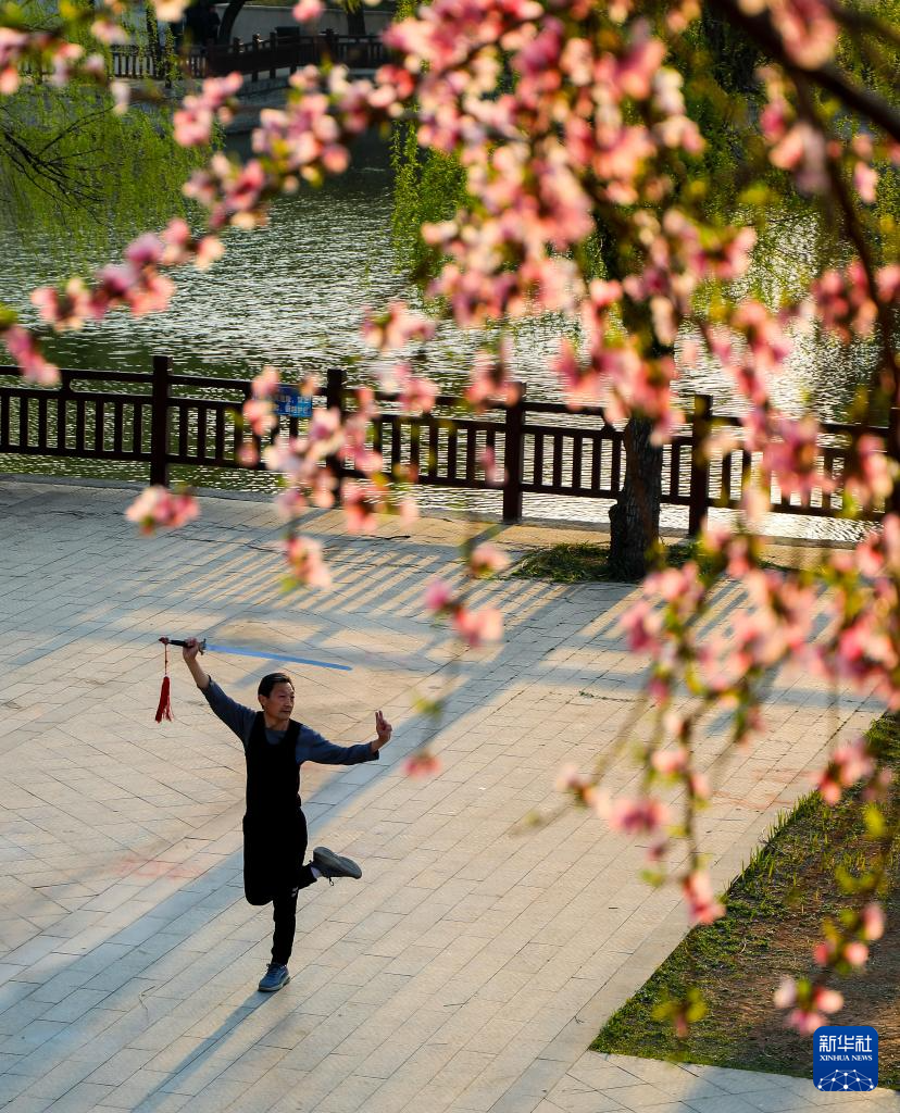 3月31日,市民在山東省棗莊市山亭區(qū)太清湖公園鍛煉身體。