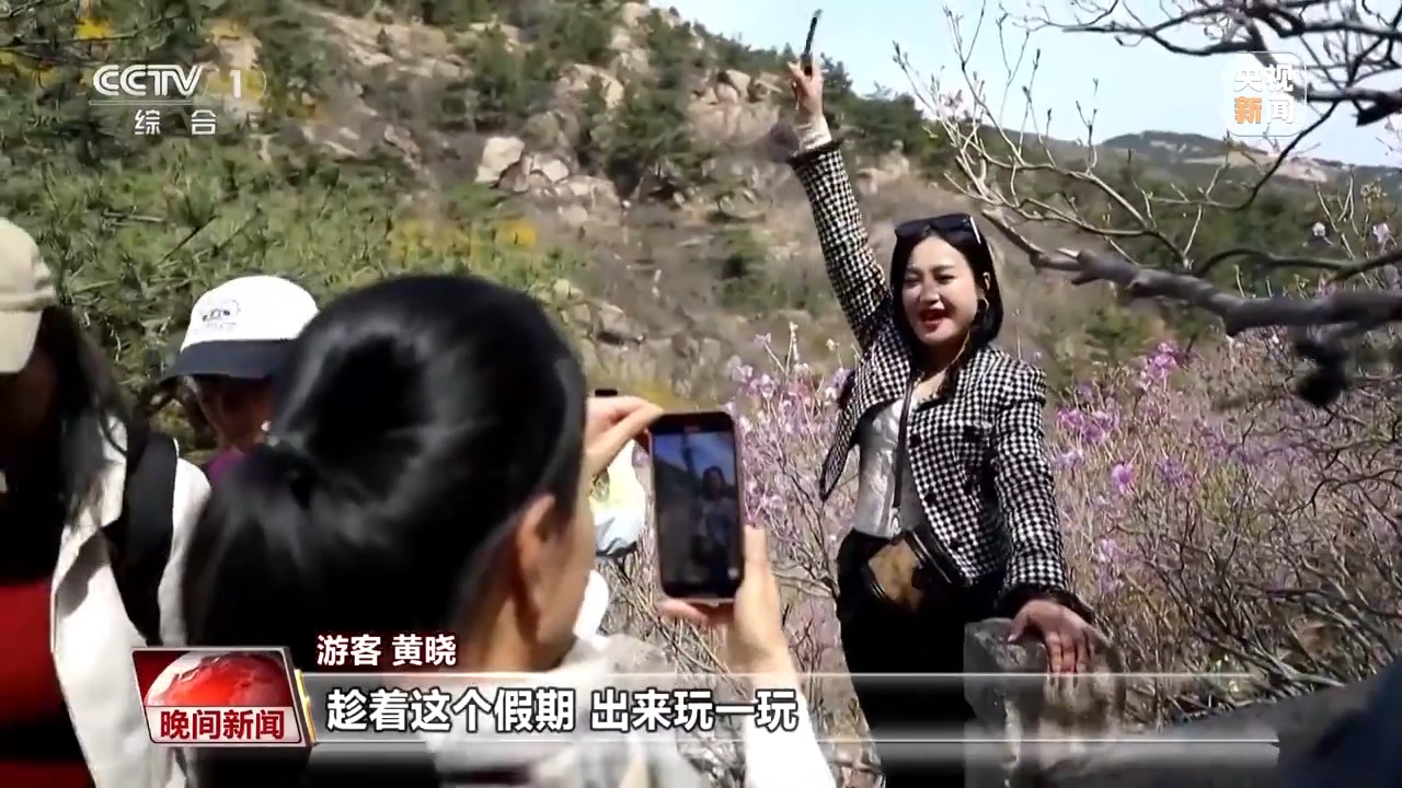 在山東青島大珠山,這幾天正是觀賞野生杜鵑花的最佳時期,吸引了眾多市民游客前來登山賞花。