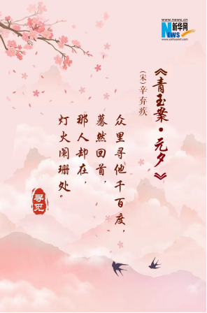 【意譯】在人群中千百次地尋找,不經(jīng)意間回首,卻發(fā)現(xiàn)那個(gè)人就在燈火闌珊處。