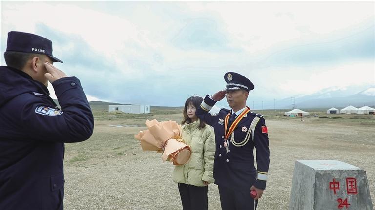 姚萬權(quán)是里孜出入境邊防檢查站的一名民警,8月5日,他的新婚妻子趙詩衡趁著暑假來到了里孜口岸探望他。看著長途奔波前來,又因為高原反應(yīng)疲憊憔悴的妻子,他準(zhǔn)備在海拔4772米的界樁前給妻子補辦一個求婚儀式,這是屬于戍邊民警的“硬核”浪漫。