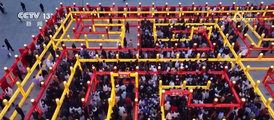在山西太原婁煩縣,當(dāng)?shù)嘏e辦了傳統(tǒng)的轉(zhuǎn)九曲民俗活動。人們在轉(zhuǎn)九曲中,祈福新的一年平安順遂。