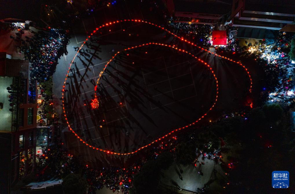 當(dāng)日是農(nóng)歷正月十三,浙江省金華市金東區(qū)赤松鎮(zhèn)虎巖村村民肩扛由100余節(jié)板凳組成的傳統(tǒng)五彩龍燈,沿村道蜿蜒游舞。板凳龍的龍頭被彩燈包裹,裝飾有花卉、祥云等圖案,在燭光搖曳間營(yíng)造出“龍騰盛世”的年俗畫卷。每年元宵節(jié)前后,浙江省金華市金東區(qū)赤松鎮(zhèn)的各村村民都會(huì)舞起板凳龍燈,祈求來年風(fēng)調(diào)雨順、五谷豐登。