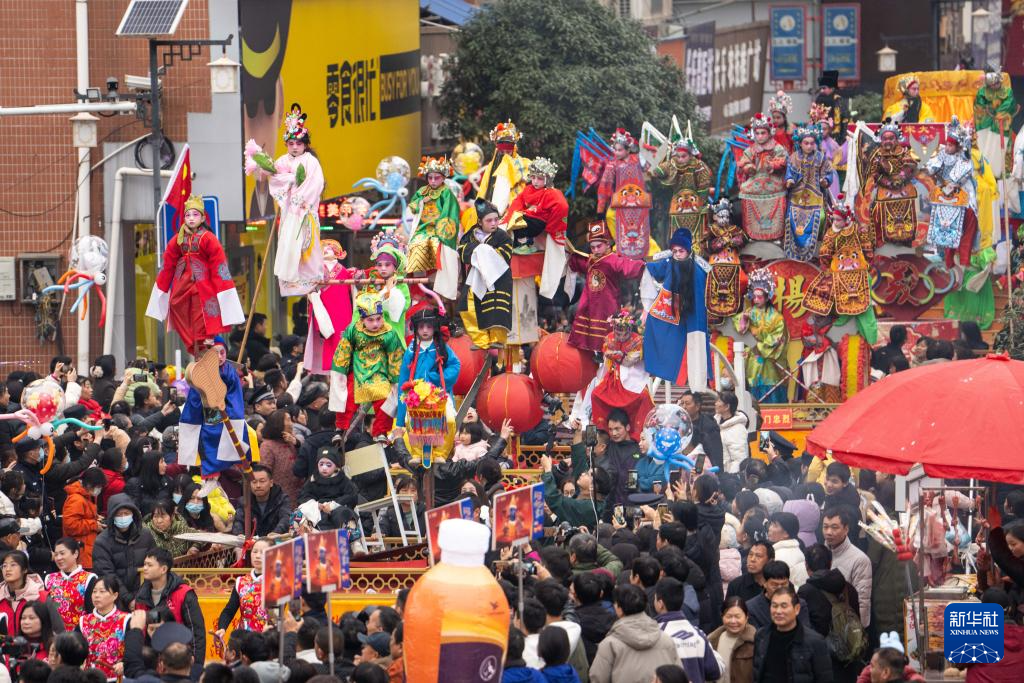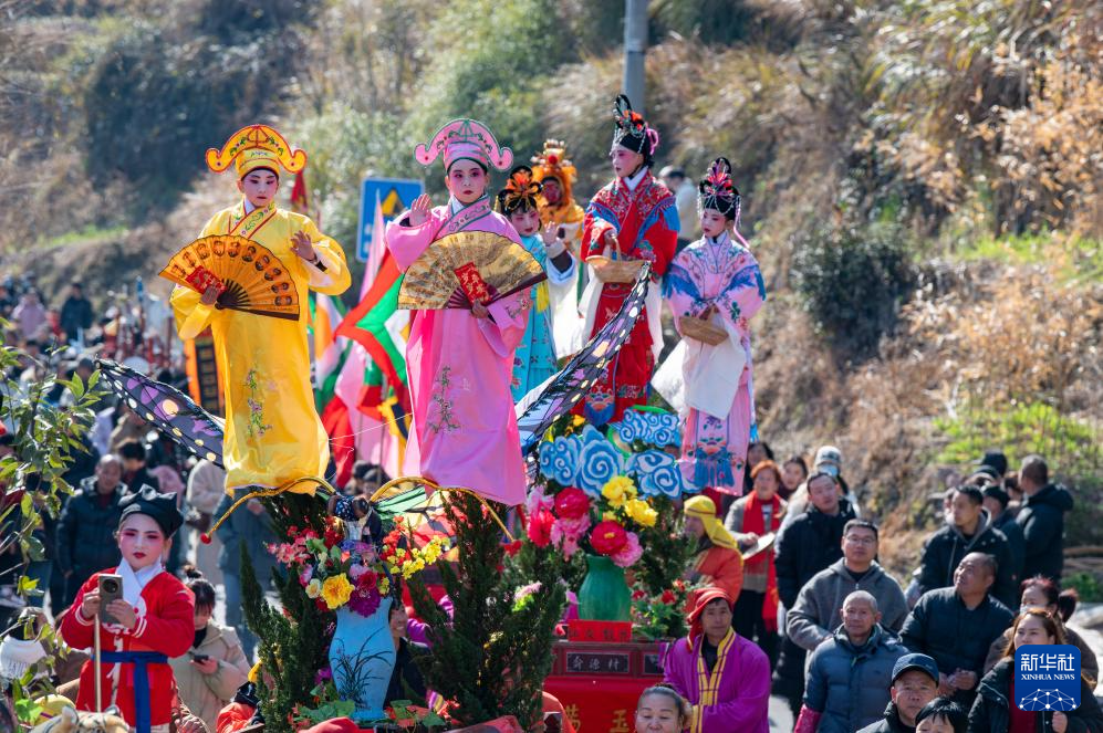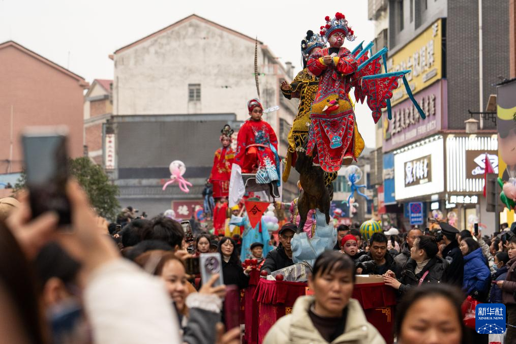 2月11日,在湖南省汨羅市長樂鎮(zhèn),人們參加抬閣故事會?!伴L樂抬閣故事會”是長樂鎮(zhèn)當?shù)匾豁梻鞒星甑脑?jié)民俗活動,2011年入選國家級非物質(zhì)文化遺產(chǎn)擴展項目名錄。