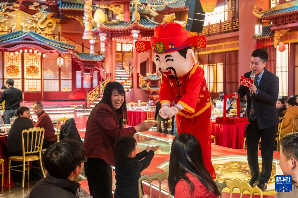 2月16日,人們在安徽省蕪湖市繁昌區(qū)繁陽鎮(zhèn)一家酒店內(nèi)吃年夜飯。新華社發(fā)(肖本祥攝)