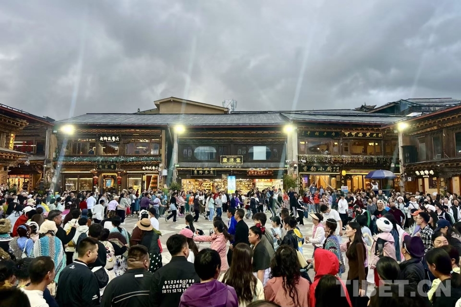 圖為在熙攘的獨克宗古城內(nèi),游客們和當(dāng)?shù)匕傩仗伹f(2025年8月攝) 攝影:邊子捷