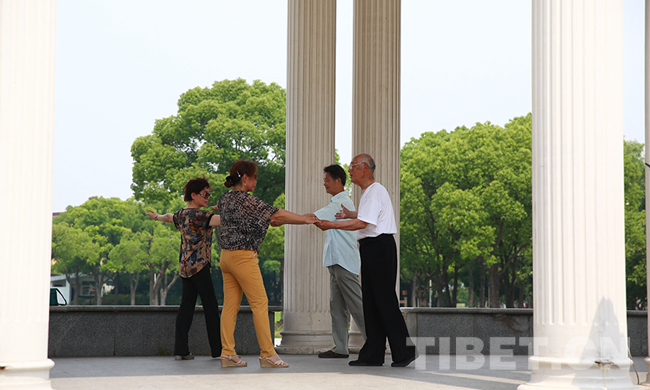 靜安區(qū)大寧公園內(nèi),老年朋友在長廊下跳舞。大寧公園是浦西中心城區(qū)最大的一座生態(tài)景觀型城市公園。曾經(jīng),這里周圍是臭氣熏天的水溝,經(jīng)過改造,如今已成為市民娛樂的休閑場所。攝影:楊月云