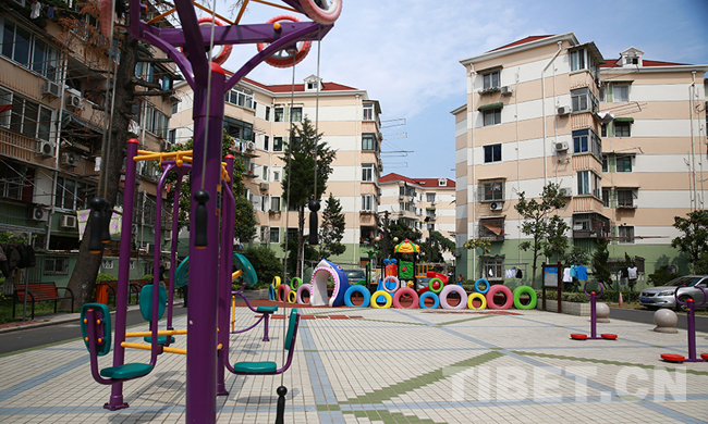 長寧區(qū)仙霞街道虹旭小區(qū)內(nèi)的市民健身器材和兒童樂園。攝影:楊月云
